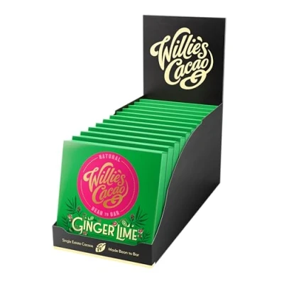 Willie's Cacao Artisan chocolate Bar ginger & Lime, 70% dark with and lime Vegan 50g x 12