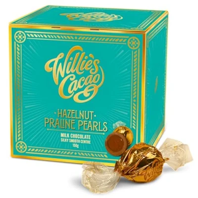 Willie's Cacao Hazelnut Praline Pearls Gift Box of Individually Wrapped Milk Chocolate Balls with Silky Soft Centres 150g Artisan Made 100% Natural