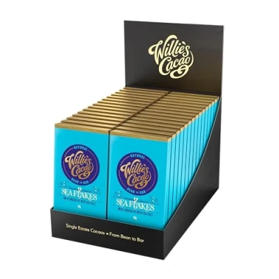 Willie's Cacao Mini chocolate Bar sea Flakes, 44% Milk with flakes of salt Aritisan 26g x 30