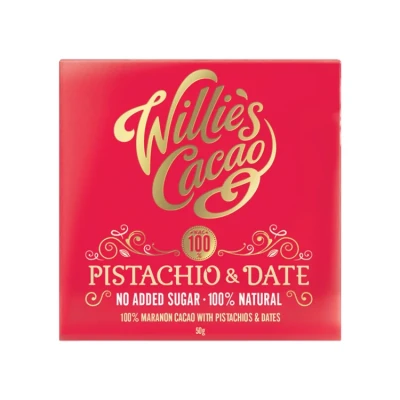 Willie's Cacao Pistachio & Date No Added Sugar 100% Natural Chocolate 50g