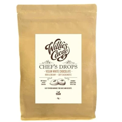Willie's Cacao Vegan Couverture white chocolate Chef's Drops creamy 1kg caramelised notes For cooking & baking Oat based