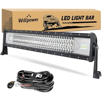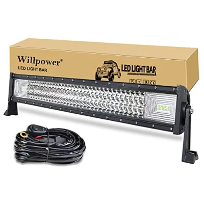 Willpower Triple Row Led Light Bar 32 Inch 405W Super Bright Off road Work Spot Flood Combo Driving Lights with Wiring Harness Kit for Car Tractor Truck ATV SUV Boat