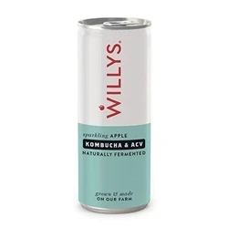 WILLY'S Apple Kombucha & Cider Vinegar Probiotics For Detox Gut Health Vegan Gluten Free 12 x 250ml Cans Sustainable ACV