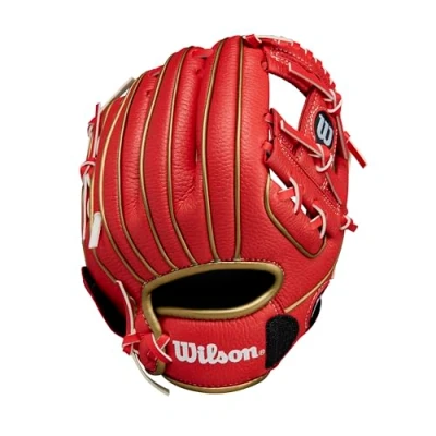 Wilson 2024 A200 EZ Catch 9” T-Ball Glove - Right Hand Throw, Red/Metallic Gold Rolled Dual Welting in Wilson gloves goes beyond a mere cosmetic effect, as it’s integrated into the liner of each infield, outfield and pitcher's model, offering better support and helping your glove hold its shape better over time. 9" H-Web All Positions