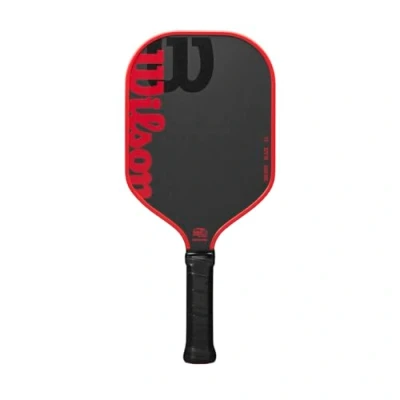 Blaze Family: High-performance collection for advanced players looking to dominate the court with power and spin Raw Hybrid: Combination of light-weight, high-strength premium carbon fiber and fiberglass materials that maximizes power while also maintaining control Elongated Shape: Shape with a more narrow sweet spot located slightly higher on the paddle that aids in maximizing power potential and reaching one more ball 13 mm: Power-focused thickness that feels slightly stiffer and is easiest to maneuver, Longer Handle Length: Ideal for players who prefer hitting with two-handed backhands Contents: 1x Wilson Blaze 13 Pickleball Bat, Size: 4-1/4’ (2), Colour: Black/Red, WR157911U2