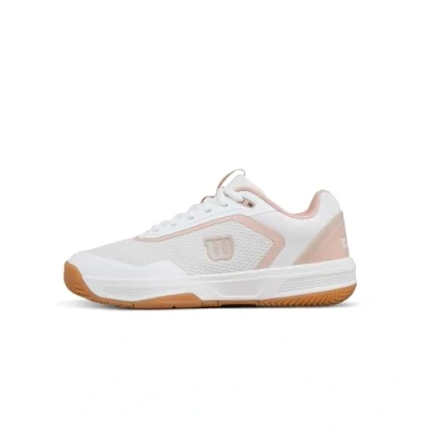 Instant Comfort and Stability: Built on Wilson’s trusted Rush franchise, the CourtGlide offers a secure, form-fitting feel and breathable comfort straight out of the box Smooth Stability: An R-DST midsole cushions every step with a balanced blend of shock absorption and support to keep you comfortable through every rally All Court Play: A modified herringbone outsole provides reliable traction and natural flexion, so you can move confidently on hard courts, clay courts, and everything in between Boosted Performance: Ortholite sockliner for superior cushioning and hygiene, Duralast outsole for extreme durability and traction, Plush materials for immediate comfort and secure fit Contents: 1x Courtglide Women's Tennis Shoes, Perfect Fit, Breezy Comfort, Reliable Grip, Shock Absorption, Fluid Motion, Colour: White / Cameo Rose / Gum1a, Size: 7