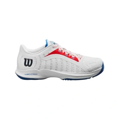 Wilson Hurakn Pro Padel Shoe, Women's, Size 7, White/Wilson Red/Deja Vu Blue