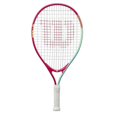 Intrigue Tennis Racket for young players, Lightweight and easy-to-handle racket, Performance-ready, Recommended for girls aged 5-6 Fun youthful design with bright lively colours, Junior length for easy and quick manoeuvrability, Light and agile to help with fast learning Arm-friendly multifilament strings, Stable and powerful yet accommodating to small hands, Comes pre-strung for convenience Made with an AirLite Alloy aluminium frame that provides lightweight durability, Parallel drilling in the frame allows for consistent response Contents: 1 x Wilson Intrigue Jr 19 Tennis Racket, Colour: Red/Teal, Size: 21
