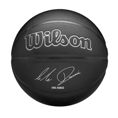 Wilson NBA Player Evergreen Basketball, With an iconic Luka Dončić silver-foiled signature Sleek black Pure Feel cover that helps provide enhanced grip and superior control over the ball Ideal for outdoor activities, All-weather resilience, Celebrate the skill and creativity of one of the game's greatest shooters Durable construction that ensures long term play, Also great as an addition to your NBA collection Contents: 1 x Wilson NBA Player Evergreen Basketball, Colour: Black, Size: 7