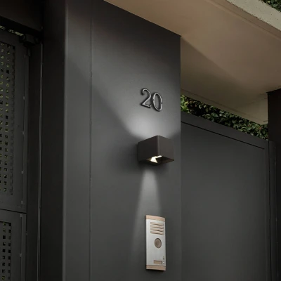 LED wall lamp Wilson with concealed screws The Wilson LED wall luminaire proves to be a decorative and bright façade illumination. Thanks to its IP65 protection rating, it can be used anywhere outdoors without hesitation. The special design of the luminaire makes the screws invisible. Wilson is made of high-purity aluminium and therefore durable. The built-in LEDs are covered by a frosted glass diffuser which allows the light to escape upwards and downwards without glare. Thus, every facade is optimally illuminated. - equipped with UV protection - incl. ECG