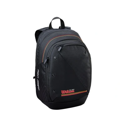 An ideal choice for the player on the go, the Wilson Pro Staff Classic tennis backpack combines functionality and a timeless design. This practical and stylish option features a padded racket compartment and a main compartment with a laptop sleeve. It offers capacity for up to 2 rackets with handles sticking out. Plus, to keep things tidy and organised, the rucksack has a special ventilated shoe pocket for separating dirty clothes or footwear from the rest of your belongings. There is also a dedicated front zipped pocket for accessories and smaller personal items. To help you stay hydrated on your way to the courts, the backpack has two side water bottle pockets. Easy carrying is facilitated by padded, adjustable backpack straps and a top handle.