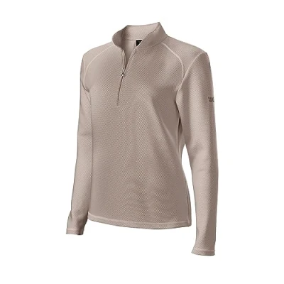 Sporty sweatshirt for women, Ideal for colder temperatures Lightweight fit for a relaxed and fresh feel Short 1/2 zip on the front for regulating the temperature and easy dressing and undressing Polyester material with stretch inserts for improved moisture control and greater freedom of movement Contents: 1x Wilson Staff Women's Golf Shirt, Polka Dot Thermal Tech, Material: 92% Polyester / 8% Elastane, Colour: Grey (Tan), Size: S, WG6004501SM