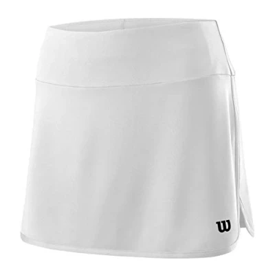 Comfortable soft cut tennis skirt, Wide freedom of movement, Printed Wilson logo Skirt with integrated shorts for optimal comfort NanoWik technology to absorb sweat and keep skin dry Made of high quality polyester and spandex, Elastic structure for optimal durability and movement, 12.5'' length skirt (31 cm) Contents: 1 x Tennis skirt Wilson W Team 12.5 Skirt, Material(s): 92% Polyester, 8% Spandex, Colour: White, Size: L, WRA766201