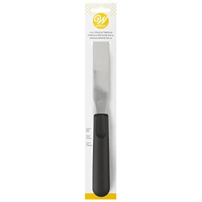 Straight-edge spatula is perfect for icing cakes and other treats Ergonomic handle is shaped for comfort and control Material: Steel blade, plastic handle Size: 28 cm Top-rack dishwasher safe; however for best results, wash in warm, soapy water before first and after each use