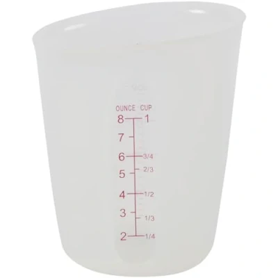 Silicone container melts, measures and pours your candy or chocolate Durable silicone is safe to 260°C Microwave-safe Capacity: 144 mL Before first and after each use, hand wash in warm, soapy water; rinse and dry thoroughly with a soft cloth