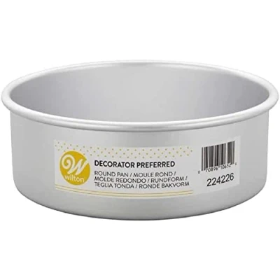 Bake tall cakes that stack easily with this round aluminum cake pan Extra inch allows for taller cakes and sturdier layers Straight edges make it easy to stack and decorate the sides of your cake Wide rims of cake pan make it easier to handle when filled with heavier batters, such as pound cake Material: Anodized aluminum that resists rusting and helps with even heating and baking