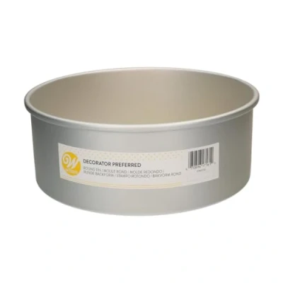 This extra deep round cake pan is perfect for baking taller cakes. The extra wide rims make the pan easier to handle when filled with heavy batters and offer added support and stability when moving your cake in and out of the oven. The anodized aluminum also resists rusting, so you can continue using this pan for years to come. Straight edges make it easy to stack and decorate the sides of your cake. Hand wash cake pan before first and after each use; for longevity, do not place in dishwasher and avoid using metal utensils; some staining and scratching may occur, but will not affect the performance of the bakeware.