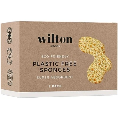 Wilton London Eco Friendly Sponge Plastic Free and Biodegradable Made from Wood Pulp Super Absorbent Multi Purpose Twin Pack (Pack of 2)