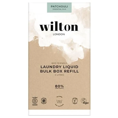 Wilton London Eco Patchouli Refill Laundry Liquid 112 Washes Non Bio Plant based Biodegradable Detergent 100% Recyclable Less Plastic Essential Oils Made in UK 4L