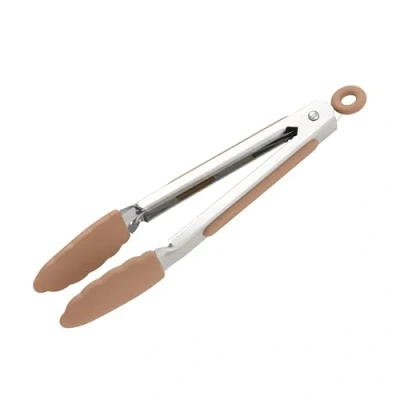 Wiltshire Mini Silicone Kitchen Tongs 18cm, Cooking & Serving Tongs, Salad BBQ Stainless Steel, Heat Resistant Utensil, Non Stick, Scratch Tip, Mocha, 21x3.2x2.7cm