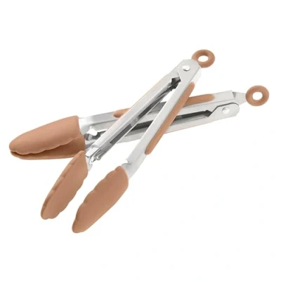 Wiltshire Mini Silicone Kitchen Tongs 18cm, Set of Two, Cooking & Serving Tongs, Salad BBQ Stainless Steel, Heat Resistant Utensil, Non Stick, Scratch Tip, Mocha, 21x3.2x2.7cm