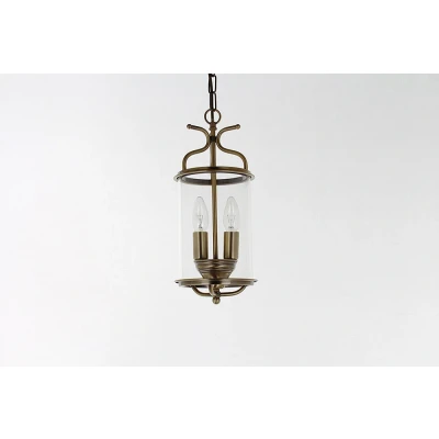 The elegant lantern style of the Winchester aNTIQUE Brass and Blown Glass Lantern Pendant Ceiling Light is ideal for any decorating style. The light will sparkle from within thanks to the clear glass panes while the antique tone make it easy to pair this fixture with existing colours and finishes.