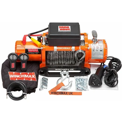 Winchmax 13,500lb (6,123kg) Original Orange 12v Electric Winch. 28m x 11mm Dyneema Synthetic Rope, 3/8 Inch Hook.
