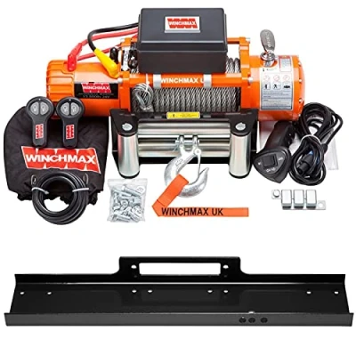 WINCHMAX 13,500lb (6,123kg) Original Orange 24v Electric Winch. 26m x 9.5mm Steel Wire Rope. 3/8 inch Hook. Flat Bed Mounting Plate.