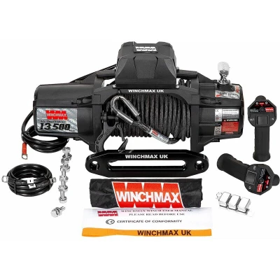 AmazonMilitary Grade Winch with Improved Anti-corrosion Measures and Enhanced Corrosion Resistance Ideal for Recovery Trucks and 4x4s up to 3.5 Tons, Suitable for all Offroad or Recovery Operations Latest Technology Twin Handset Long-range Wireless Remote Controls and Backup Control Lead. Comes with 25m x 10mm Armourline Double Braided Synthetic Rope. 3/8 inch Tactical Clevis Hook G70 Grade Forged Steel. Safety Catch and Hand Saver Includes a Strong Winchmax Branded Winch Cover to Protect from Water and Road Grime.
