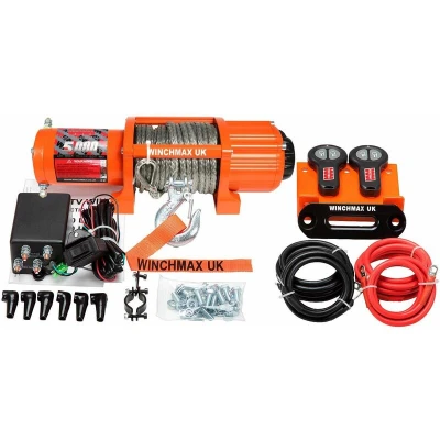 WINCHMAX 5,000lb (2,268kg) Original Orange 12v Winch. 15.5m x 5mm Dyneema Synthetic Rope. 1/4 Inch Hook.