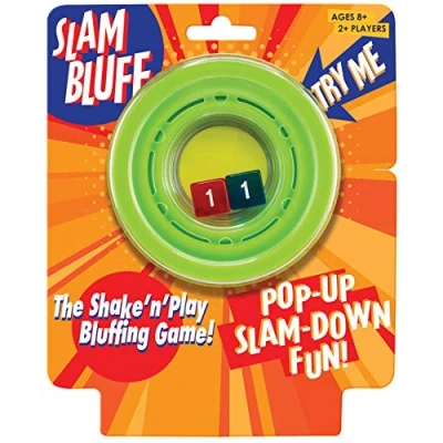Slam Bluff is the ultimate game of truth, bluff and counter bluff Slam the dice, look at your score and decide shall i lie, shall i not? No challengers move on, you got away with it you absolutely amazing bluffer. you had a total of 3 but called 7. build your score until you are caught cheating, now they need to beat your score Maybe you called correctly and you got challenged, you actually told the truth for once you get to double your score The dice are sealed in the unit and cannot come out, and it flattens so could fit in your pocket. a great little game that can be used in all sorts of situations, never leave home with it, Manufacturer: Cheatwell Games
