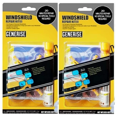 Windscreen Repair Kit x2 GENERISE Auto Chip Tool for Chips, Cracks & Glass Includes Fluid Plus Anti Slip Dashboard Mat
