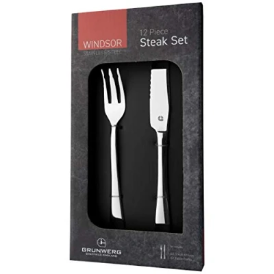 Windsor Grunweg Carded 12 Piece Steak Cutlery Set, Contains 6 knives and Forks/Table Forks