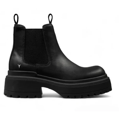The Windsor Smith Dopamine boots are the perfect blend of bold style and functionality. These chunky platform Chelsea boots feature a luxurious wax finish leather upper and are designed for both comfort and impact. With double woven gusset elastics and woven pull tabs, they offer easy access, while the signature Windsor Smith bull charm adds a touch of flair. Stylish Wax Finish Leather Upper: Durable leather that exudes sophistication. Comfortable Non-Leather Lining: Soft lining that enhances breathability and comfort. Robust Chunky T.P.R Sole: Provides stability and durability for everyday wear. Impressive Heel Height: 55 mm heel height for added elevation and a bold silhouette. Ample Platform Height: 35 mm platform offers additional comfort and a modern edge. Secure Fit: Double woven gusset elastics ensure a snug and supportive fit. Convenient Woven Pull Tabs: Easy on-and-off access for a hassle-free experience. Signature Branding: Features the Windsor Smith bull charm on the back for a distinctive touch. Chic Round Toe Shape: Classic design that complements various outfits with ease.