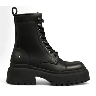Windsor Smith Womens Leather Chunky Combat Boots Destroy Black Size UK 4