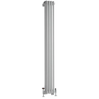 Windsor Traditional White 1500mm x 200mm Cast Iron Style Vertical Double Column Dual Fuel Electric Radiator with Angled Thermostatic Valves