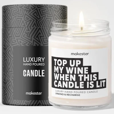 Wine Candle 220g Soy Wax with Madagascan Vanilla, Jasmine & Sugared Almond Gifts for Women Christmas or Birthday Funny Candles by Makester