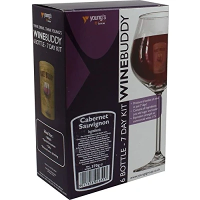 Ingredients To Make 6 Bottles Of Cabernet Sauvignon. Ferments In 7 Days & Comes With Full Instructions. Kit Includes - 1 x Concentrate Bottle - 1 x Yeast Nutrient - 1 x Stabiliser - French Oak Chips - Finings. You Will Require 900g Of Sugar Or Brewing Sugar, Basic Brewing Equipment For 6 Bottles Of Wine. Tony's Tips,6 Bottles of perfectly Quaffable wine in just 7 days! Of course the longer it's left in the bottle (before opening!) the better it will be, however, at around 1.80 per bottle it's a great value kit in the style of Cabernet Sauvignon. It can also pay to "Brew Short" by reducing the amount of water in the mix by 1/2 litre . . . . and if you really want to boost the character of this wine and "make it your own" as they say on TV Reality shows like the X Factor and Strictly Come Dancing, then introduce some extra Grape or Fruit juice to compliment the taste such as VinClasse Red or White Grape Juice Concentrate, or for a more complex finish try adding controlled amounts of Young's Country Definitive Wine kits as desired. Plenty of experiments to enjoy here! So take careful notes . . . . . all wine making equipment and ingredients are available on the Balliihoo website.
