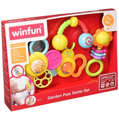 WinFun Multisensory Rattles Set of 4 - Suitable for Newborn Babies Includes 1 suction cup flower, 1 textured butterfly, 1 rotating worm and 1 flower rattle Each toy has different colors, textures and sounds to stimulate every baby's sense Safe toy, no removable or electronic parts that can be accidentally brought in mouth The rattles are suitable for storing in the bag or bag of the little one, Manufacturer: Colorbaby