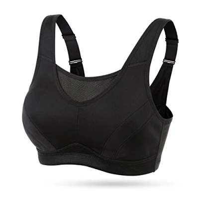 WingsLove Women's High Impact Sports Bra Support Wireless Adjustable Plus Size for Large Breasts Black