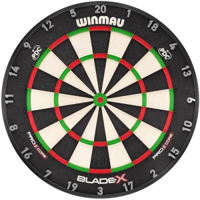 5 Year Warranty – Play with total confidence. Every Blade X dartboard is backed by a full 5 year warranty, reflecting Winmau's commitment to premium materials, expert craftsmanship, and long lasting performance. Winmau Blade X Pro Core - The official dart board of the Professional Darts Corporation (PDC), engineered for elite tournament play with unrivalled scoring consistency, reduced bounce outs, and pro level durability helping every throw hit the target Next Generation Pro Core Bristle Construction – Advanced layered sisal with a 13% deeper sisal bed improves dart penetration, absorbs impact energy, enhances self-healing, and delivers maximum stability and consistent scoring. Built for longer lasting performance across all setups, including cabinets, lighting systems, and dartboard surrounds—ideal for Winmau Blade 6 fans. Ultra Slim Blade Wiring System - Precision 60° angled wire design expands scoring zones, guides darts into triple areas, and dramatically reduces deflection, giving players the accuracy expected from Winmau dart board and tournament boards. Premium Finish & Fast Installation - Rotating laser cut steel number ring adjusts effortlessly with no removal required. Precision Rota-Lock mounting system ensures quick levelling on dart stands or cabinets. Includes Blade X Fusion Integrated Flight & Shaft System and Fusion Case - to safely store and transport your Blade X fusions