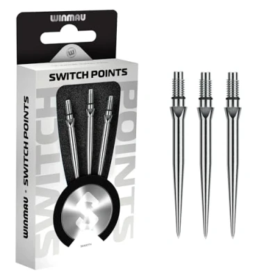 WINMAU Switch Points Carbon Steel Tip Threaded Rapid Change Mechanism 1 Set per Pack Smooth Silver Effect 40mm Professional Darts Accessories