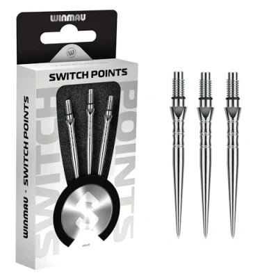 WINMAU Switch Points Carbon Steel Tip Threaded Rapid Change Mechanism 1 Set per Pack Wave Silver Effect 40mm Professional Darts Accessories