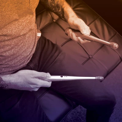 AmazonPair of Battery Powered Impact Sensitive and Buttoned Digital Drum Sticks with In Built Speakers Beat the Tip of the Drumstick on Any Hard Surface to Practice Drumming without the Need for a Full Kit In Built LED Light in Tip Lights Up when Hit on any Surface to produce the Classic Drum Beat Sound Comes with Easy to Reach Buttons for Snare and Crash Cymbal Sounds and Option to Play In Built Melody Each Drum Stick Measures Around 35 cm by 4 cm by 4 cm | Requires 2 AA Batteries (Not Included) Recommended for Ages 8+ | Drum Sticks Will Respond to Light Tapping - No Need to Use Excessive Force