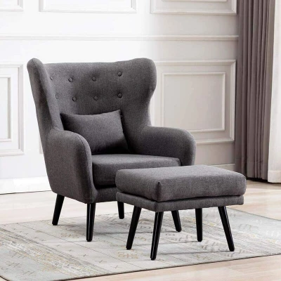 Winslow Wing Back Occasional Fabric Lounge Accent Chair Living Room Armchair Grey with Footstool