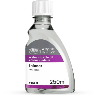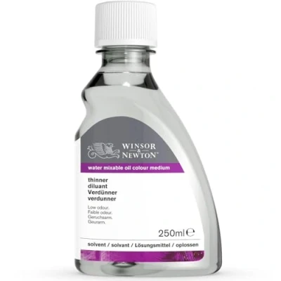 Winsor & Newton Water Mixable Thinner is specially formulated to dilute water mixable oil paints while maintaining their rich color and texture. This thinner offers a safe, low-odor alternative to traditional solvents, making it ideal for artists working in shared or enclosed spaces.. Perfect for Diluting Paints: Achieve smoother, more fluid brushstrokes without compromising color vibrancy.. Safe & Solvent-Free: A non-toxic, low-odor alternative to traditional solvents, perfect for home studios and classrooms.. Enhances Flow & Transparency: Ideal for glazing techniques and layering effects, adding depth to your artwork.. Easy Cleanup: Cleans up effortlessly with water, simplifying your painting process.. Preserves Paint Integrity: Retains the natural finish and drying time of water mixable oils.. Experience hassle-free painting with Winsor & Newton Water Mixable Thinner, designed to give you complete control over your oil painting techniques while keeping your workspace safe and solvent-free.