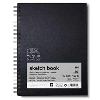 Winsor & Newton 6673011 Sketchbook with 80 Sheets Sketch Paper, 110 g/m², Hardcover Bound Back, Micro Perforated Sheets, Spiral Bound, DIN A5