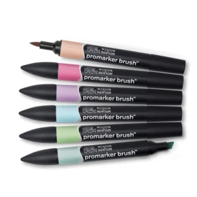 Add a touch of softness and versatility to your artwork with the Winsor & Newton BrushMarker Pastel Tones Set. This thoughtfully curated set includes six gentle, airy shades: Putty, Rose Pink, Pink Pearl, Cool Aqua, Meadow Green, and Pebble Blue, perfect for creating delicate and harmonious designs.. Pastel Colour Palette: Features six light and airy tones designed to complement each other and broaden your marker collection.. Dual-Tipped Precision: Includes a flexible brush nib for expressive strokes and a broad chisel nib for smooth, streak-free coverage over large areas.. Alcohol-Based Translucent Ink: Provides blend-friendly, highly malleable ink for seamless gradients, shading, and tonal effects.. Print-Quality Performance: High-quality nibs deliver consistent, streak-free results, perfect for professional-grade artwork.. Extensive Colour Range: Part of a 72-colour collection, offering shades from subtle pastels to bold, vibrant hues.. The BrushMarker Pastel Tones Set is ideal for illustrators, designers, and artists seeking to expand their palette with soft, versatile hues that offer exceptional blendability and flawless coverage.