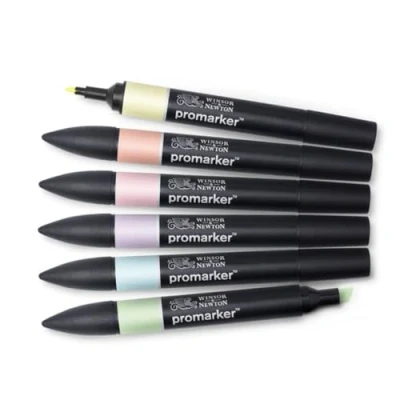 The Promarker 6 Pastel Tones set offers a beautifully curated selection of soft, fresh colors, perfect for adding delicate shades and subtle highlights to your artwork. This set includes Soft Peach, Buttercup, Meadow Green, Cool Aqua, Lavender, and Pale Pink, providing a gentle and versatile palette for creative projects.. Key features:. Includes six pastel shades: Soft Peach, Buttercup, Meadow Green, Cool Aqua, Lavender, and Pale Pink.. Perfect for creating light, airy designs and subtle gradients.. High-quality pigments deliver smooth application and consistent, vibrant color.. Dual-tipped markers: a fine nib for precise details and a broad chisel tip for larger areas.. Designed for illustrators and artists, the Promarker 6 Pastel Tones set is an essential addition to any creative toolkit, bringing softness and elegance to your designs.