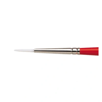 The Winsor & Newton Series 233 Round Brush is a versatile, high-quality synthetic brush designed for fine detail, lines, and washes. Part of the University range, this brush offers exceptional control with its short handle and is perfect for artists seeking an affordable, multi-purpose tool for various painting mediums.. Short Handle for Precision: Provides extra control, making it ideal for intricate details, delicate lines, and smooth washes.. Premium Synthetic Bristles: White synthetic fibres offer excellent spring and controllability, suitable for oils, acrylics, and watercolours.. Versatile Design: Stiff enough for fluid oil paints yet soft enough for watercolours, ensuring smooth application and minimal visible brush marks with acrylics and oils.. Durable and Long-Lasting: Built to maintain performance over time with proper care, offering great value for students and artists alike.. Distinctive Appearance: Features a signature red handle with a white tip for easy identification in your toolkit.. The Winsor & Newton Series 233 Round Brush is an excellent choice for students, hobbyists, and professionals seeking a durable, versatile, and affordable brush for a wide range of techniques and mediums.
